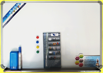 | ไวท์บอร์ด ชนิดติดแม่เหล็กได้ ผิวไวท์บอร์ดชนิดอะคริลิคถูกเคลือบโดยตรงลงบน แผ่นเหล็กกาวาไนต์ และอบที่ความร้อน 200 c ทำให้ไม่มีปัญหาบอร์ดบวมติดแม่เหล็กไม่อยู่ |